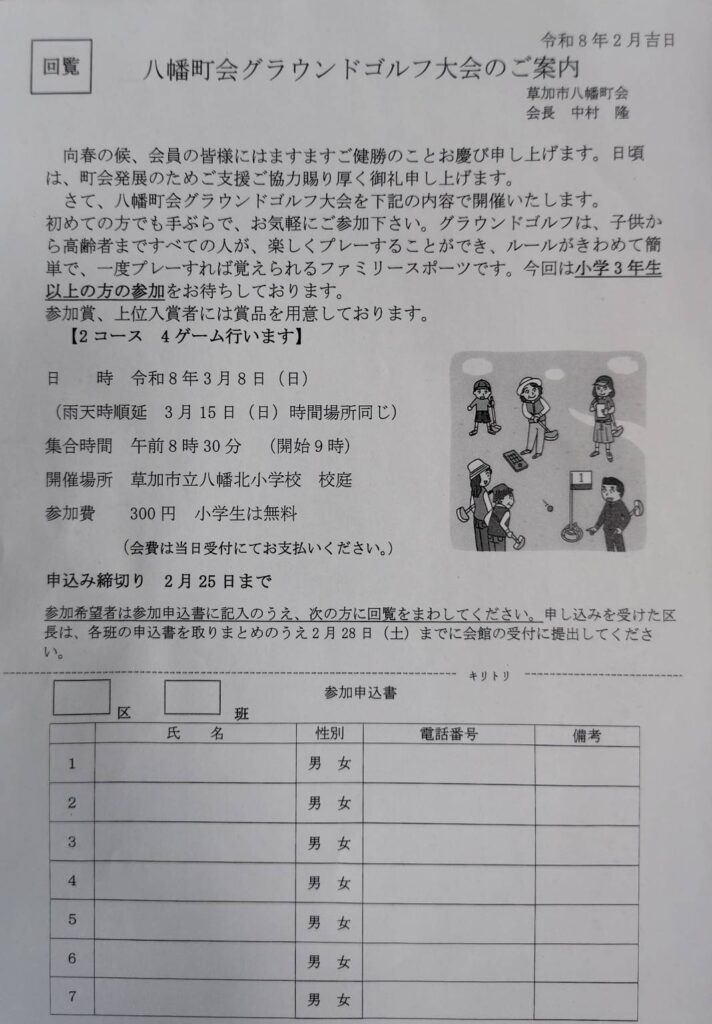 八幡町会グラウンドゴルフ大会のご案内
